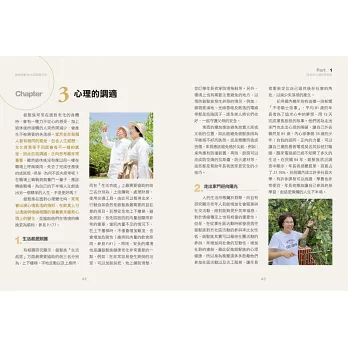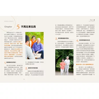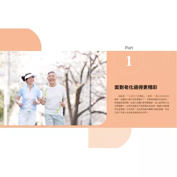 這本書針對銀髮族群設計而出版,書中全部字體放大,穿插著寫實的生活圖片,讓大家閱讀時不會感到枯燥乏味。內容編排設計,除了講述適合銀髮族的日常活動,更能解釋哪些活動對於年長者有什麼幫助?這樣的編輯與安排,更能抓住讀者的求知心。