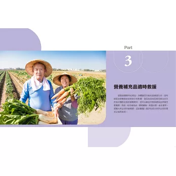 營養素補給站的解說,適時地讓讀者清楚營養成分在哪些食材?每一道健康食譜,除了以文字詳細描述材料與做法之外,更搭配著相關食材圖片,讓大家身歷其境。另外,烹調叮嚀、營養叮嚀的內容,可以看到兩位作者的用心與貼心,除了教導做菜,也讓大家認識營養素的功用與價值,讓大家知其然,知其所以然。