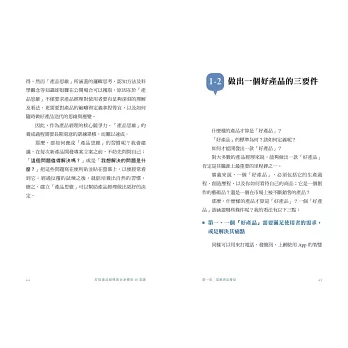 本書主要分成兩大部分,分別是「新產品開發從0到1的流程」以及「產品經理精選問題集」。