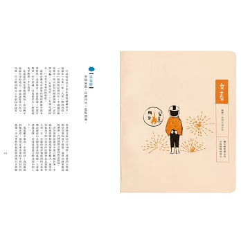 於是當我知道遠流的台灣館,竟同時網羅了氣象、命理和生活美學等三個領域的達人,傾力合寫了這一本史無前例的《樂活國民曆》時,覺得特別欣喜。它不但勘正了農民曆發源地──北緯35度的黃河流域,與北緯22度至25度間的台灣因地理之不同所導致的節氣誤差,更以一般國民的實用角度,從人文、風土、養生、卜卦、開運、氣象、旅遊、祭典、農業、食材等諸多面向,為我們展開了美麗、可愛、清楚的圖繪,而二十四個節氣的書寫則無一不實用,無一不文采,無一不芬芳,即使是國小國中的學齡孩子,也可以透過閱讀這本書,與學校自然科學、社會人文類教科書相互印證,它是科普的、是浪漫的,也充滿了活色生香的閱讀感。
