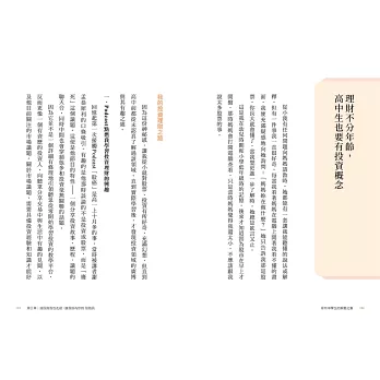 誰說考上頂大的孩子只會死讀書?玩社團、學投資理財、攀登玉山、騎車環島,以及與女友共同完成考駕照和到台北讀大學的夢想,這些過程讓祐亨的中學時期過得精彩充實,並對讀書與人生都帶來正面影響。
