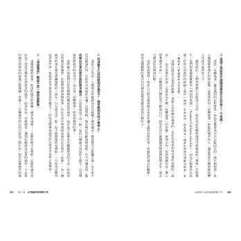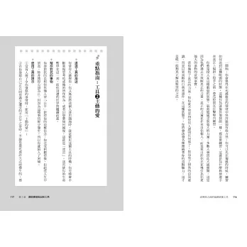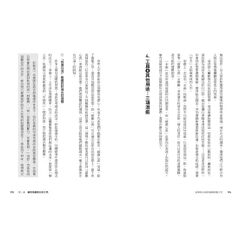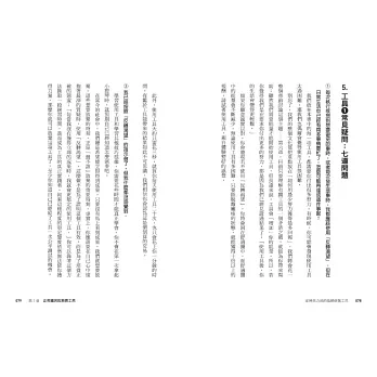 2. 每章結尾整理工具的重點整理,包含適用問題、使用時機、實作步驟,方便讀者操作應用。