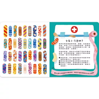 注意事項:書內所附的貼紙為OK繃遊戲示意貼紙,請勿貼在真正傷口上。
