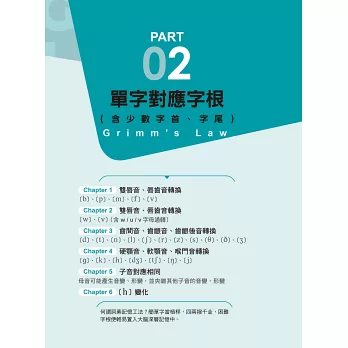 ● 考據字源史料,真實呈現格林法則。