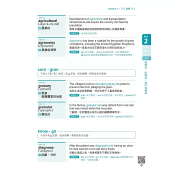 每一個字根皆搭配相對應的單字拆解記憶法,透過「格林法則」學習字首、字根、字尾的單字記憶規則,雙管齊下,提升學習效益。
