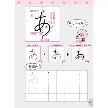 章魚「Tako」最愛捉弄正經八百的假名,一邊玩一邊學,從角度、間距到對齊,全部詳細解說,簡直比書法老師親授還要細緻! 還有書寫筆順的步驟,不只教你正確的寫法,還幫您一次記住字形結構!