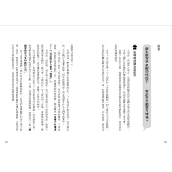 別再將客訴當成悲劇或惡夢而過度恐慌,或是對客訴應對感到厭惡,給自己壓力了。你也不需要再為了不擅長應對客訴而逃避或敷衍了事。相反地,我希望透過這本書,消除各位對客訴的負面印象,並學會聰明應對的方法。