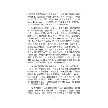 根據作者近五十年來,在美國、中國大陸與台灣的教學經驗,一般初學者對「量子力學」,往往「知其然,而不知其所以然」。例如,坊間介紹「量子力學」的書裏,大多沿襲德布羅意(L. V. D. de Broglie, 1892-1987)、海森伯(W. K. Heisenberg, 1901-1976)、狄拉克(P. Dirac, 1902-1984)、薛定諤(E. Schrӧdinger, 1887-1961)等人早年的講法,以「位置動量對易關係」 ,作為粒子運動的「基本假設」,來架構整個「量子力學」。這有點像西方魔術師,從硬頂禮帽裏變出一隻活生生的兔子;容易讓初學者有種「丈二金剛,摸不着頭腦」的感覺。因此,作者在前述《量子力學》書中為讀者解密:祇要假設粒子是以「複概密幅(complex probability-density amplitude)」 呈現於「位置空間」,則「位置動量對易關係」就可由數學上「混變數(random variable)」的概念,以嚴謹的邏輯推論得到。這裏的 就是所謂的「波函(wave function)」。