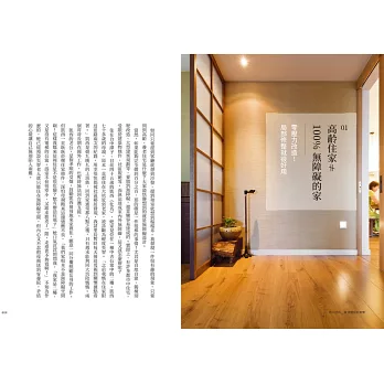 如果問我,這本書想寫給的對象是誰呢?對象其實再明確不過了!是鎖定在38~55歲、以「預計透過搬家或第二次翻修,創造住到老的家」的屋主。若要再更進一步聚焦,還包括「預計接長輩來住或住附近」、「僅與伴侶同住或獨居」及「想過簡單安全的老後生活」的人。