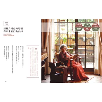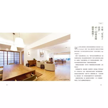 成員及空間需求確認後,再規畫後半輩子的家,如此一來,這樣的家,不但能守護,也能夠激發與促進居住者對生活的熱情,同時更提供了身心上的舒適感。而這就是我在這本書想探討強調的......如果能夠把老後的家設計到位,那麼,越老越幸福、越老越獨立自主,不會再是遙不可及的夢想!