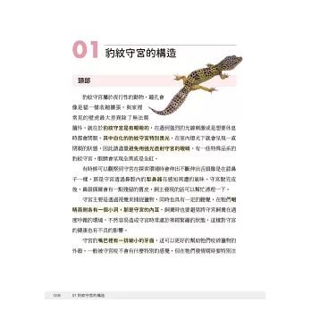 無論你是初學者、擁有基礎經驗的飼主,還是資深飼主,本書專業實用的資訊都將協助你滿足對守宮的瞭解需求,並提供最佳的飼養照顧建議:
