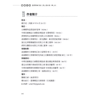 賴宗成致力於推動醫藥行銷專業人才,從營業行銷代表到台灣田邊製藥股份有限公司副總經理,累績豐厚銷售管理經驗和卓越經營領導能力。目前擔任藥界公司顧問,培訓年輕一代的醫藥行銷專業人才更是不遺餘力。期望能引導所有的醫藥專業行銷人員,都能依照行銷規範做良性的互動,進而確保用藥安全,與整個醫療團隊提升醫療品質,關懷人類健康,共築全民福祉。