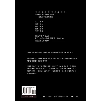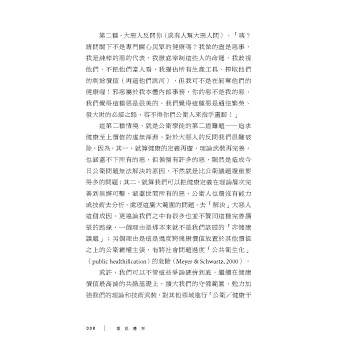 公共衛生與廣泛健康科學傳統上是高度技術導向的研究領域,較少機會處理到公衛政策與實作所仰賴的那些規範預設與架構。這些問題,在多年的公共衛生政策實作之中,已經或多或少以一種「事實上存有」(de facto)的方式來回答了,也就是,政策確實做出了這些價值判斷。但這並不表示這些判斷就是倫理上較可欲或較為正當的判斷,這正是本書的主要工作。這是一本「公共衛生倫理」(public health ethics)的專書,書中所提出的,是對公共衛生政策與實踐倫理正當性的叩問,本書也嘗試以公衛健康議題為核心,與政治、倫理、社會、人類學等不同領域對話,借助不同領域的知識,來解決人們每日生活中共同遭遇的公衛問題。