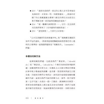 這樣的定位,也使得本書在風格上與一般自然生醫或社會科學導向的公共衛生領域著作不太相同,儘管是研究,但它並不是「科學」研究成果的彙報,儘管蒐集許多資料並以之為論述參照,但它也沒有提供什麼堅實的「證據」。我在本書中提供的答案,主要是一種綜合的分析架構、觀看的視野,可以合理地應用於思考各個不同的公共衛生或健康政策相關議題。有些時候,我會講出我自己認為某件事情在倫理上最好的某種「主張」(這種時候,我盡量會在文中直接說出,而不會迂迴隱晦等待讀者自己發掘)。這是一般公共衛生倫理研究的常見途徑。