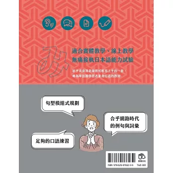 有鑒於網路教學日趨發達,本社與日檢暢銷系列『穩紮穩打!新日本語能力試驗』的編著群「目白JFL教育研究會」合力開發了這套適合以媒介語(中文)來教學,且通用於實體課程與線上課程的教材。編寫時,採用簡單、清楚明暸的版面、句型模組式教學、再配合上每一課的對話以及練習題,無論是「實體一對一家教課程」還是「實體班級課程」,又或是「線上同步一對一、一對多家教課程」,或「線上非同步預錄課程(如上傳影音平台等)」,都非常容易使用(※註:上述透過網路教學時不需取得授權。唯使用本教材製作針對非特定多數、且含有營利行為之非同步課程時,需事先向敝社取得授權)。
