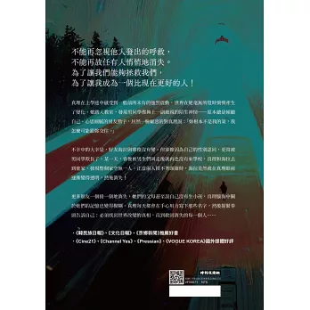 本書將成為某個人的勇氣與安慰。而正是那種重生的勇氣與安慰,將會改變世界。──《Channel Yes》