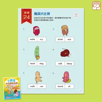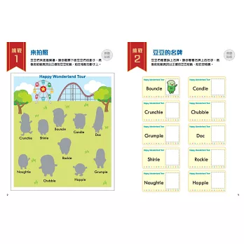 豆豆好友團去了遊樂場,透過各種趣味遊戲,成為了英文小達人!小朋友,快來跟豆豆好友團一起,發揮你的英語運用能力,完成這本活動冊裡的挑戰題吧!