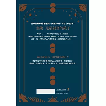 本書包含對金錢的清晰洞察,如果你因為低薪、債務、厄運、經濟衰退而感到沮喪,如果你對自己擁有的一切患得患失,你將能從中得到勇氣與富者應具備的格局,踏上不被金錢擺布的人生。