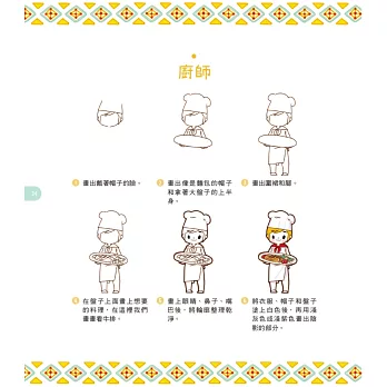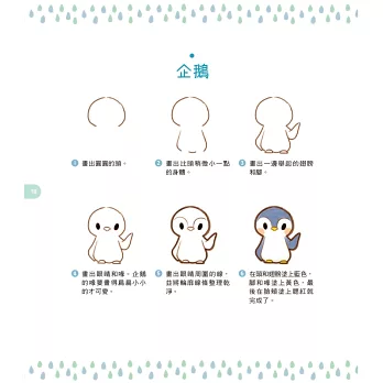 只要依書中從大到小、從前到後、從上到下、從中間向四周的小秘訣,以及運用圓形、三角形、方形等簡單圖形的畫畫小技巧,6~9個步驟就可以畫出可愛的塗鴉!使用任何筆,如鉛筆、色鉛筆、原子筆、鋼珠筆、簽字筆、彩色筆、蠟筆…都OK。不同於一般繪圖書,這裡用簡單的小方法加上立體感和明暗,就可以跳脫一般平淡的繪圖,畫出寫實又可愛的插畫,讓作品掌握真實立體感,又可以擁有Q版的畫風。