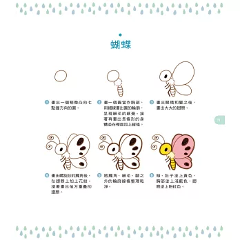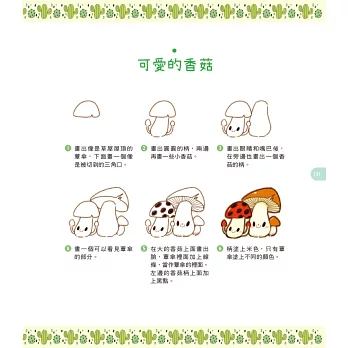 讓大小朋友與親子都愛的快樂畫畫趣,蒐錄最受歡迎的231個圖畫,從角色、動物、植物、美食、天氣、旅行、建築、交通工具,到童話人物、想像中的事物、特別的日子…等,只要畫上幾次,就可以試著繪出自己想畫的人事物。
