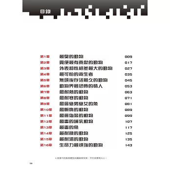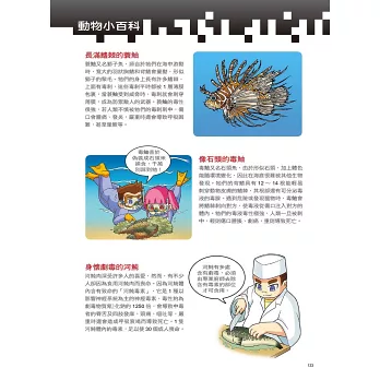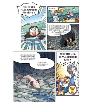設有「動物小百科」單元,介紹比樹懶更懶的洞螈、發光不是為了浪漫而是想飽足一頓的妖掃螢、能耐熱高達80°C又可以百毒不侵的龐貝蟲等基本常識,以及能在極端氣候和真空環境下存活的水熊蟲、擁有超強再生能力的海蛞蝓、可以三年不進食且吞石頭就能果腹的鱷魚等超炫知識,讓小朋友有系統的學習。