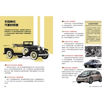 本書鋪陳的故事,從1885年卡爾.賓士(Karl Benz)發明的汽車,直到未來汽車。針對汽車的基本性重大變化,以及史無前例快速發展的技術,修訂版添加了汽車共享服務、擴增實境技術、環保材料等最新趨勢的故事,將過往的內容更新為符合時宜的內容。如同汽車的世代交替與發展,盼望各位讀者在閱讀本書時,汽車知識也將一步步深入。