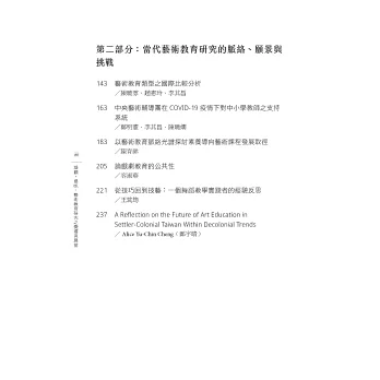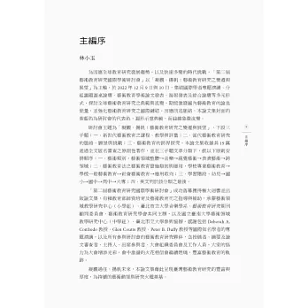 無論是對於從事藝術教育研究的學者、教師,或對於藝術教育議題感興趣一般大眾而言,本書都將是一份寶貴的資源。透過作者們的深度對話和交流,本書呈現了各種觀點的多樣性,更為讀者提供豐富的思想火花和啟發。從藝術教育的理論基礎到實踐應用,從課程設計到評量方法,本書呈現了全面而深入的視角,助力讀者更好地理解和應對當前藝術教育領域的重要議題。
