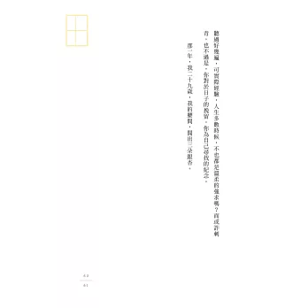 長大後,發現更難感覺到快樂。仍會像18歲一樣疑惑未來會長什麼樣子。閱讀完後好像少了一些迷惘,知道自己其實擁有很多,應該更有意志地去活出自己想要的樣子。並相信,還沒來的,都在路上。──Nicole