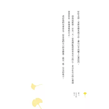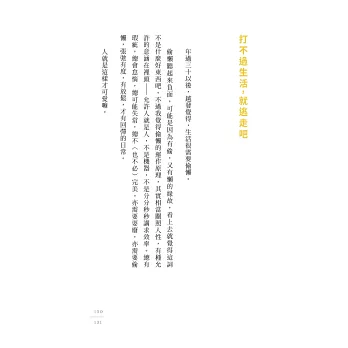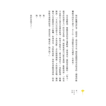 如果你也跟我一樣,總是很用力很用力、很ㄍㄧㄥ的活著,覺得不努力,就會被世界拋棄的話,很推薦讀采岑這本書。它就像一位溫柔的瑜珈老師,告訴你不要急,每一個呼吸,其實你都在前進哦;告訴你偶爾偷懶也沒關係啊,人又不是機器,偷懶並不等於不負責;告訴你我們誰也都曾在生活中跌倒、在破爛的小套房仰望著理想中的未來。即使很狼狽,你還是努力撐過來了,光是這一點,就足以給自己大大的鼓勵。