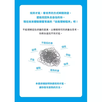「才能」就是「你自然而然會做的事」,這與你「外在」的技能和知識無關,而是你「內在」已經擁有的,只是你還沒發現。