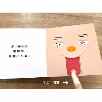 先讓寶寶自己與這本書獨處一番,書中的每個移動式的動態設計,會引發寶寶的好奇心,動動小手,觸摸書中每個凹凸的結構與形狀,透過觸感體驗,挖掘書中的畫面會有哪些奇特的變化。