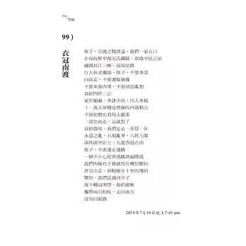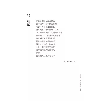一個大錯是:我寄了183首給蕭蕭、李瑞騰、須文蔚、駱俊廷,卻寄了193首詩給醫科大學的鄭智仁,文本數量不同,對撰序者是不公平的。這是我在這篇後記中應該向他們鄭重道歉的。須文蔚教授指出我的田園主義傾向,一位漢語學者Alfred也與我提:我有深刻但埋伏很裡面的田園嚮往,只有鄭智仁助理教授在我的最後一詩(193:〈棋局〉)尋出我在城市與田園的猶豫。鄉鎮下棋,門口可擺龍門陣;大都市的人,一樣可在花園樹蔭下對奕。