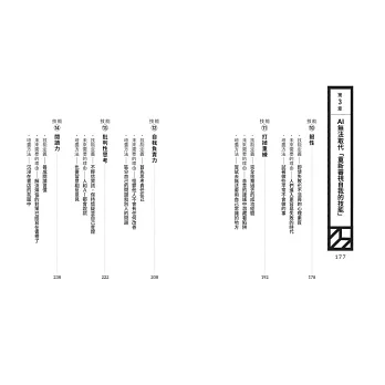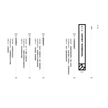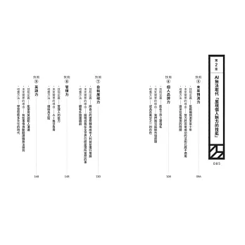●本書內項目其實與AI命題無關,是本來就持續被要求的能力。包含管理力、預測力、邏輯思考能力、能堅持之軔性等。作好你可以作的事。