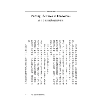 又或者,他們根本是累了、乏了,不想再耗下去了,就用「Freakonomics」吧!書名副標說明此書探討的是「所有事物隱藏的一面」,這是我們撒的第二個謊。我們以為,人們看到這些字眼,自然知道這是刻意的誇大修辭,但有些讀者逐字嚴肅看待,指責我們敘述的大雜燴故事其實並未涵蓋「所有事物」。因此,這個副標雖非刻意的撒謊,卻變成了一個謊言,我們在這裡向各位致歉。