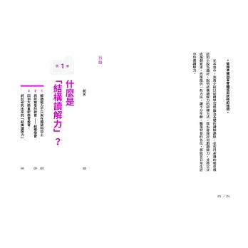 在本書中,我將介紹以結構學習理論為基礎的讀解課程,並利用身邊的報章雜誌和小說為題材,說明結構讀解力的訓練方式。我也會探討何謂讀解力,並將它分成幾個要素,然後提供一些方法,讓不分年齡、職業背景的各位,都能在日常生活中培養讀解力。