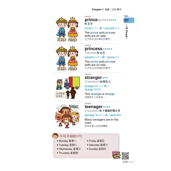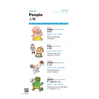 熟能生巧讓英文學習更臻完美,貼心設計一款專屬的學習紀錄表,讓讀者可以仔細記錄下每一次的預習和複習。每一個單字皆標註常用及常考星號,星號愈多表示測驗中出現的機率愈大,要花時間將它們通通記在腦海中!