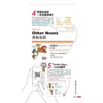 本書所有單字附有中英文音檔,其中英文音檔由美籍老師錄製,發音保證道地!只需用手機下載「Youtor App」並掃描書中QR Code,走到哪裡都有老師念給你聽!要學就學最正統的發音,培養最敏銳的聽力。