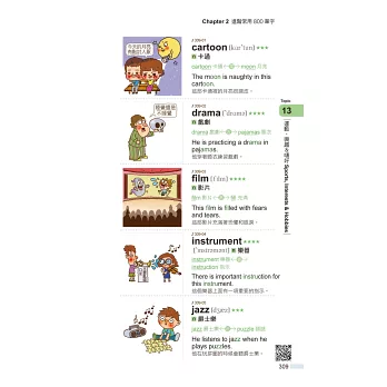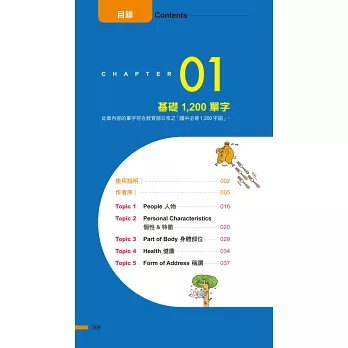 善用6種單字記憶法,從2,000個單字推至20,000個單字,每一個主題單字連結1至3個相關字彙,不僅熟記主題單字,更能掌握其相關衍生字,搭配上例句,提升英文力。