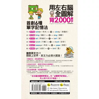 本書作者李鈺秋利用「左右腦全圖解學習法」的概念,首創6種單字記憶法: