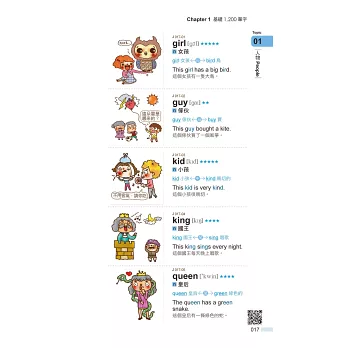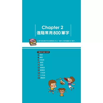 本書單字以教育部審核通過之「2,000字參考常用字彙」為依據,並符合教育部公佈之「十二年國民基本教育課程綱要 國民中小學暨普通型高級中等學校參考字彙表」。適合英語程度初/中級者以及國中小學學生/家長,程度適用於全民英檢初級、國中教育會考。