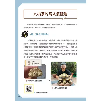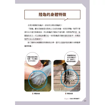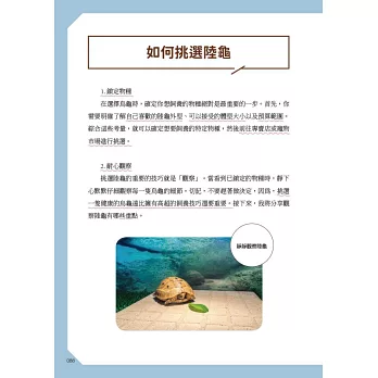 ◎實用問答:針對飼主常有的問題,如陸龜的健康狀態、曬太陽、泡澡需求等,提供明確和實用的答案。