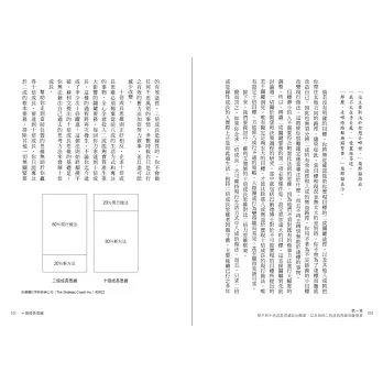 3.善用「20/80」法則來「刻意練習」:重新思考20/80法則,在10倍成長思維的世界,你必須捨棄80%的事,只專注在「20% 最有價值」的事,然後反覆練習與精進,創造只有你能辦到的價值。