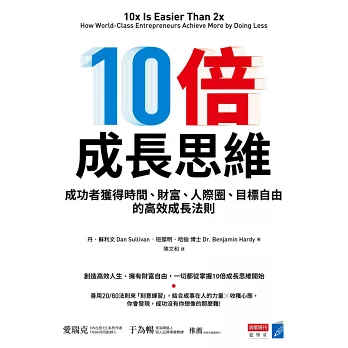 「在二十五歲師從丹.蘇利文(Dan Sullivan)時,我第一手體驗過10倍成長思維如何全面改變人生。班傑明.哈迪博士卓越地擷取丹的概念精髓,然後透過這部傑作啟發讀者。這是每位創業家必讀的好書!」──吉諾.威克曼(Gino Wickman),著有《集客力》(Traction)和《理想的企業人生之道》(The EOS Life)