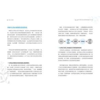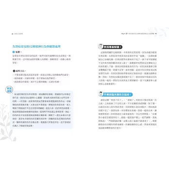 失智症者非自願的身心及情緒變化,讓大多數照護者都不知所措,書中收錄個案實例說明12種常見的外顯症狀:妄想、幻覺、激動/攻擊、憂鬱/情緒不佳、焦慮異常亢奮、冷漠、失控、出現怪異(重複)動作、睡眠模式改變/夜間遊走、食慾/飲食行為異常,更整理出『臨床分析x話術應對』,透過個案故事和生活情境讓照顧者活用,也藉此理解失智症者的無助與難處,不過度保護也不嚴格限制,唯有多一分理解,才能少一分心理負擔!