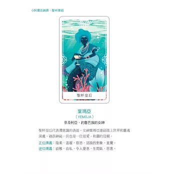 說故事、聽故事,《神聖塔羅》是故事的寶庫。這副結合了各地傳說與神話的塔羅牌打開了我們的心胸與視野,讓人抽出卡牌的同時又迫不及待地想瞭解牌面中的有趣傳說。我在這裡看見了作者的巧思,也領略了集體心靈的智慧。