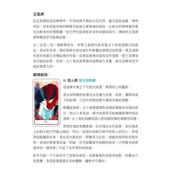 *指導手冊會列出每個故事的名稱和起源地,更會深入介紹每張塔羅牌的意象和主題。