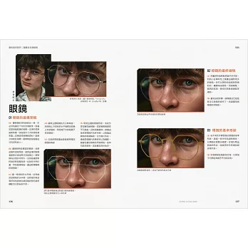 以及人像畫經常會畫到的頭髮、飾品、眼鏡等主題,分別解說基本畫法與精修技法。