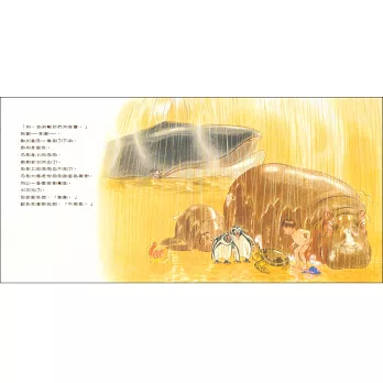 在地上滑行的企鵝、張開大嘴的鯨魚,還有享受搓澡的河馬等,生動又細膩。
