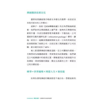 如果你發現傳統的職涯路徑不適合你,想嘗試新的工作型態,那麼這本《CHANGING!轉型地圖》就是為你而寫。
