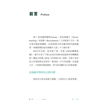 這本書結合了世界趨勢、真實案例,以及行動計畫,帶你看見哪些新領域的人才受到市場重視,提供你描繪嶄新地圖的線索。簡單來說,搭配外在環境的趨勢走向,探索內心真正想要的工作與生活,並在現有技能上增添新技能,同時進行內外的轉變,就是我在這本書定義的「轉型」。